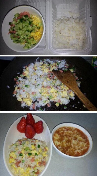 第3天、五彩炒饭+番茄鸡蛋汤+草莓